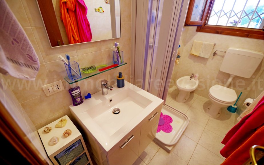 Il bagno è finestrato e completo di box doccia.