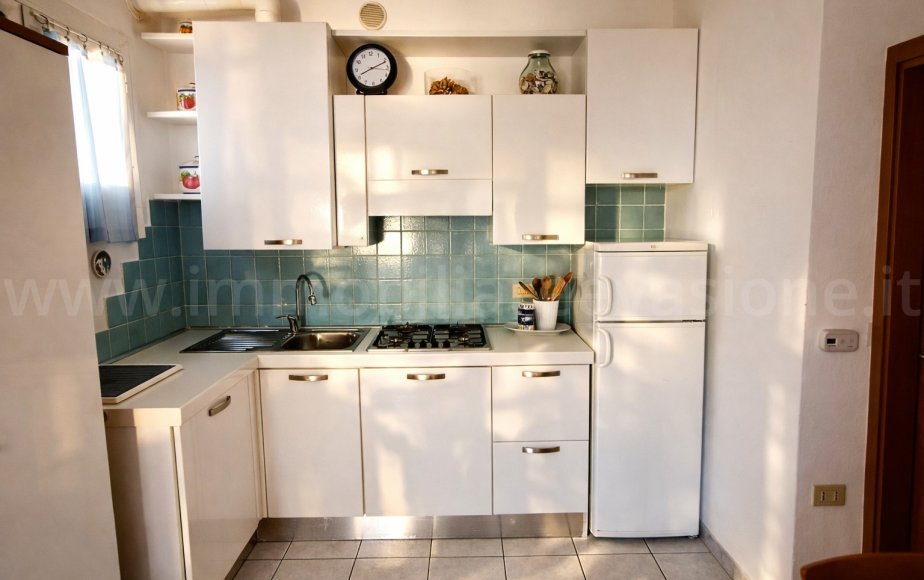 - CUCINA A VISTA attrezzata con PIANO COTTURA A GAS, FRIGORIFERO CON CELLA FREEZER, LAVASTOVIGLIE e LAVATRICE.